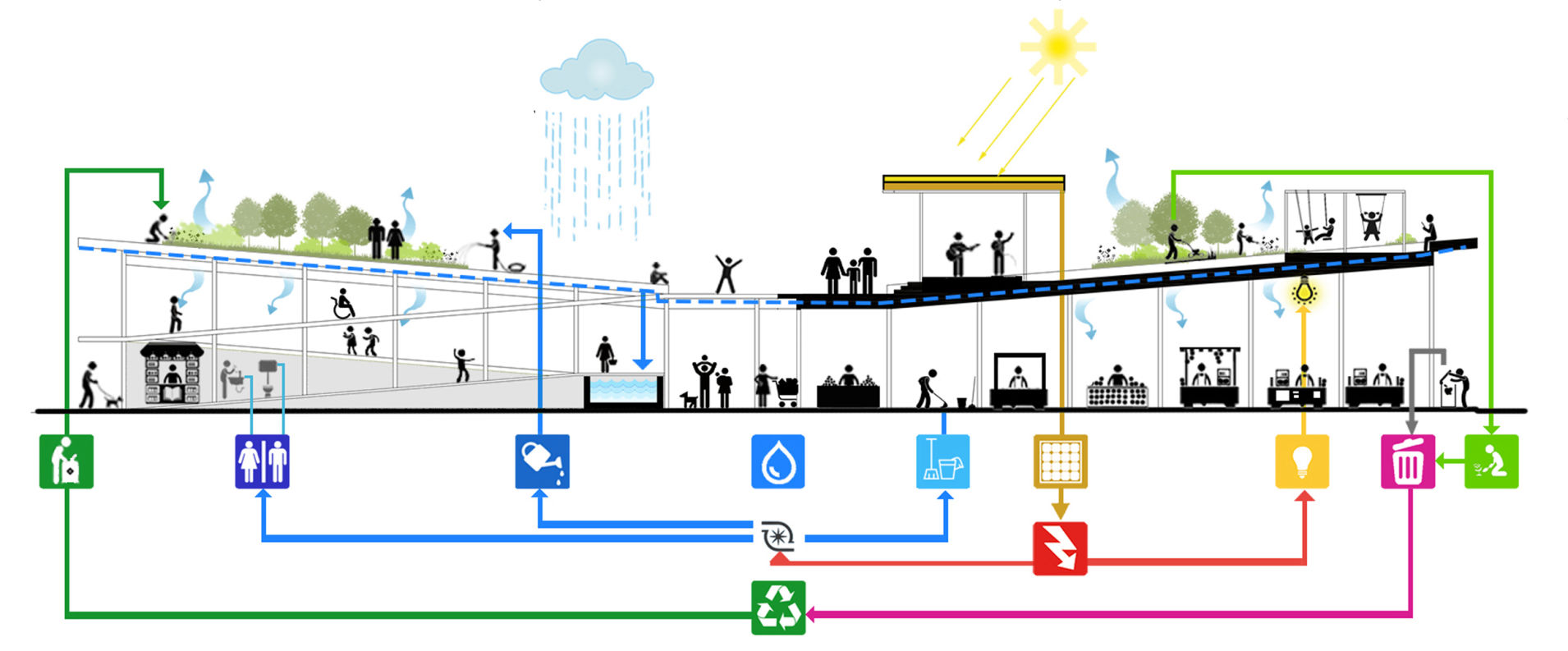 of aesthetic sight, useful for the collection of rainwater, to create shade, to mitigate the albedo effect of the