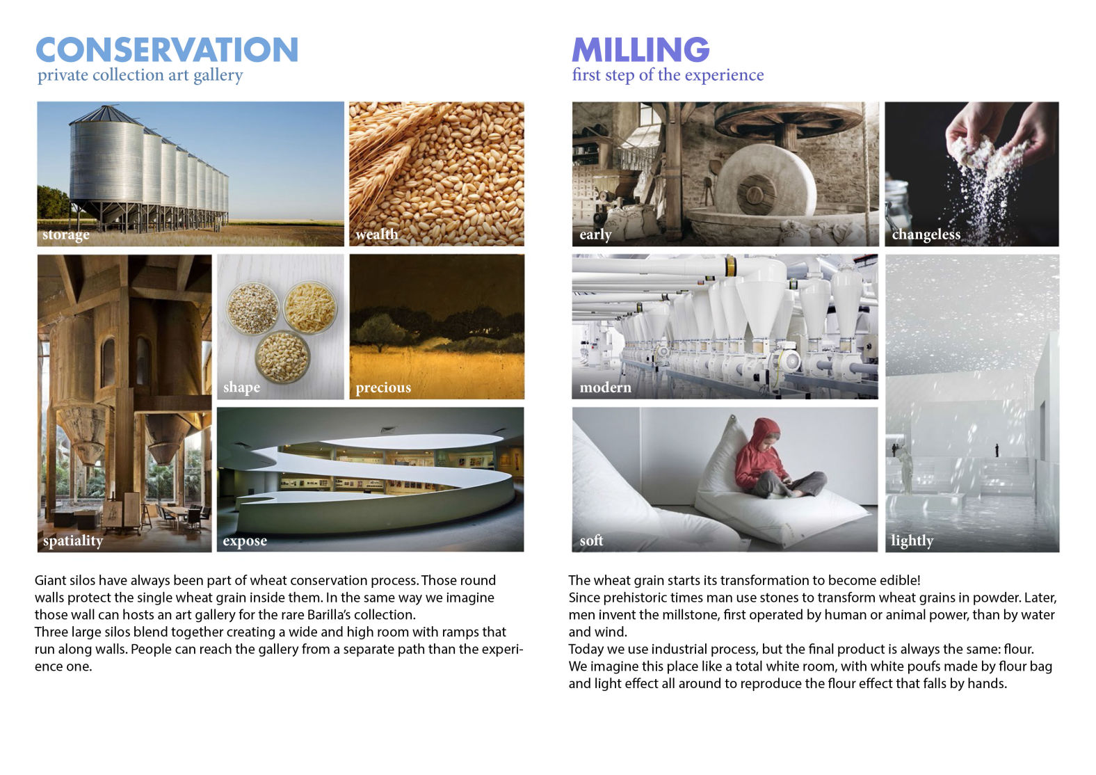 conceptual visual, tactile, smell and taste experiences that represent the complete transformation process of the wheat and his derivatives.